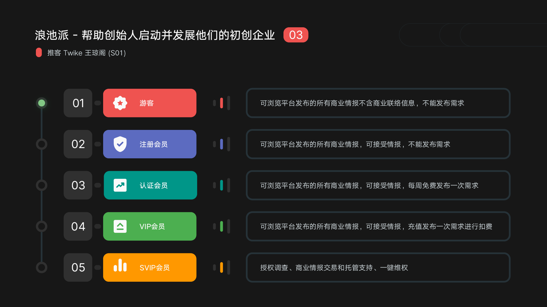 从现在的市场环境来说,其实创业成功的难度确实很大。我们从务实的角度出发,首先帮助创业者发现自己的核心价值, 尽快找到自己的核心能力,然后把其他的门关掉, 你将会完成如下阶段: DVL MVP MVT Startups Demo Day Growups